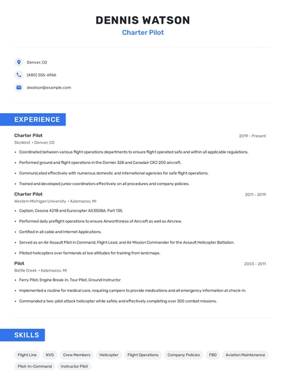 The most important skills for a charter pilot resume and required skills for a charter pilot to have include: