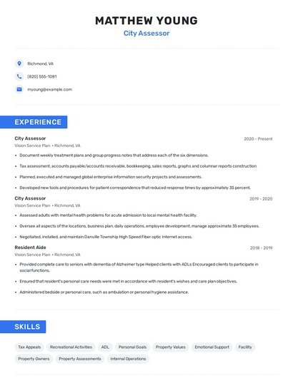 The most important skills for a city assessor resume and required skills for a city assessor to have include: