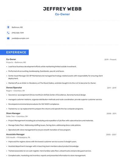 Choose from 10+ customizable co-owner resume templates