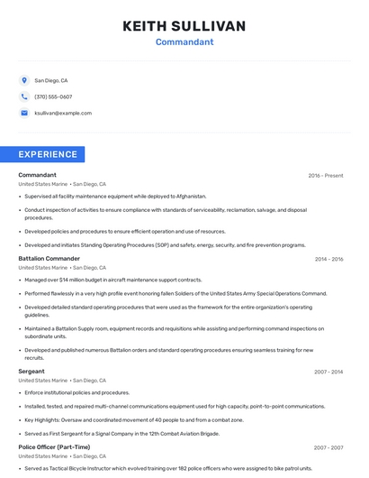 Commandant skills for your resume and career