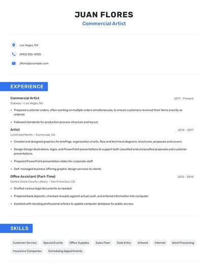 Choose from 10+ customizable commercial artist resume templates