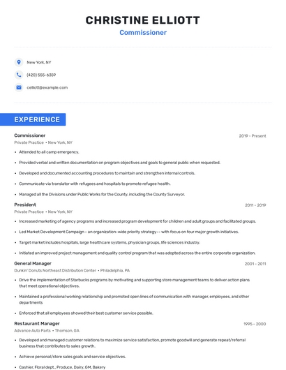 Choose from 10+ customizable commissioner resume templates