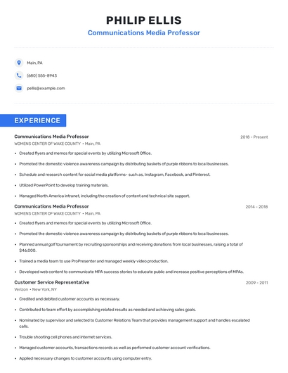 The most important skills for a communications media professor resume and required skills for a communications media professor to have include:
