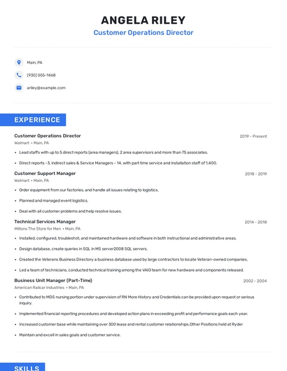 Build a professional customer operations director resume in minutes. Browse through our resume examples to identify the best way to word your resume. Then choose from 5+ resume templates to create your customer operations director resume.