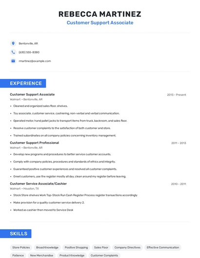 Build a professional customer support associate resume in minutes. Browse through our resume examples to identify the best way to word your resume. Then choose from 5+ resume templates to create your customer support associate resume.