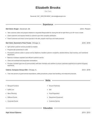 Deli clerk resume examples from 2026