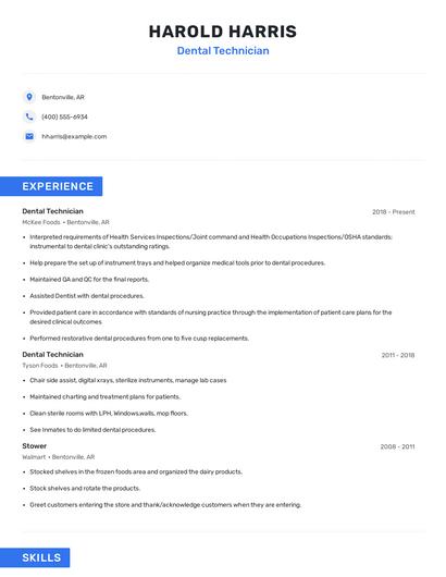 You can use Zippia's AI resume builder to make the resume writing process easier while also making sure that you include key information that hiring managers expect to see on a dental technician resume. You'll find resume tips and examples of skills, responsibilities, and summaries, all provided by Zippi, your career sidekick.