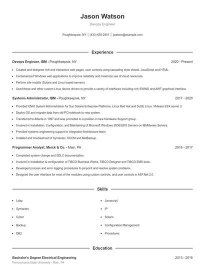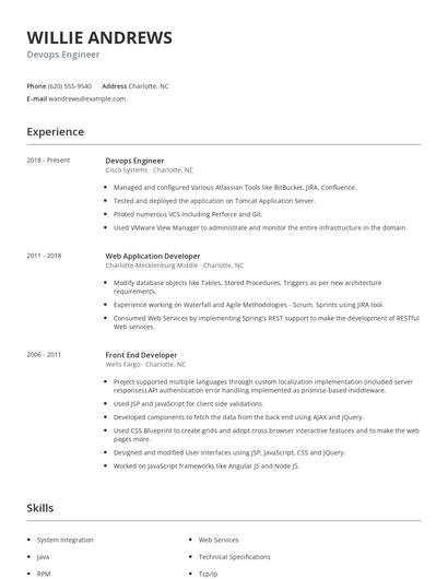 A resume summary is your opening statement that highlights your strongest skills and top accomplishments. It is your chance to quickly let recruiters know who you are professionally - and why they should hire you for the devops engineer role.