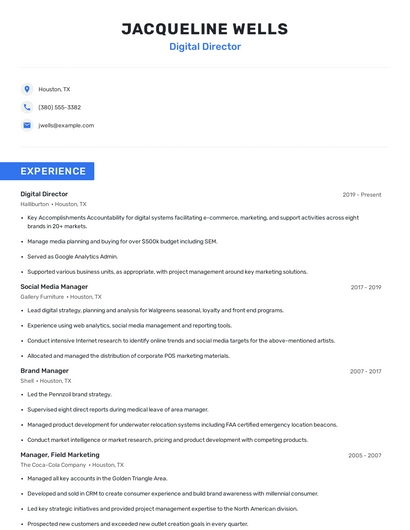 Choose from 10+ customizable digital director resume templates