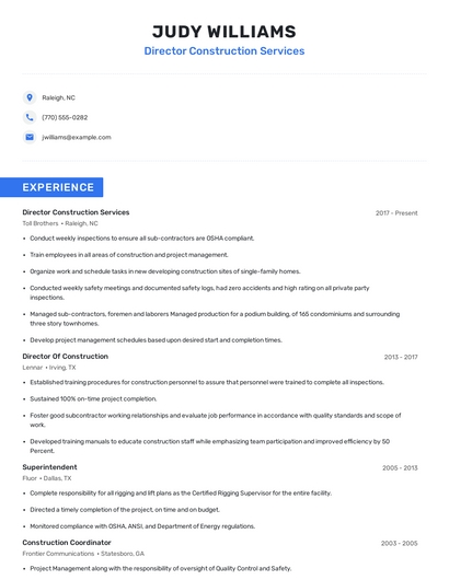 Choose from 10+ customizable director construction services resume templates
