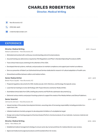 Choose from 10+ customizable director, medical writing resume templates