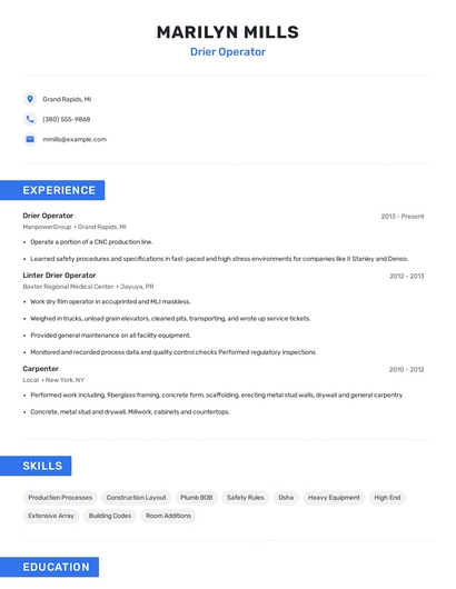 The most important skills for a drier operator resume and required skills for a drier operator to have include: