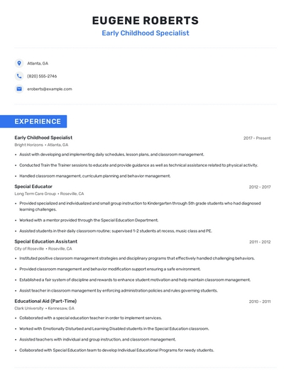 Choose from 10+ customizable early childhood specialist resume templates