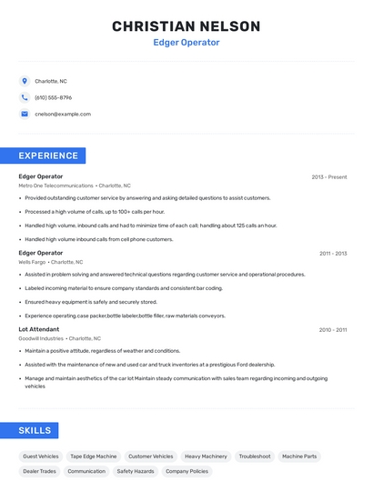 Choose from 10+ customizable edger operator resume templates