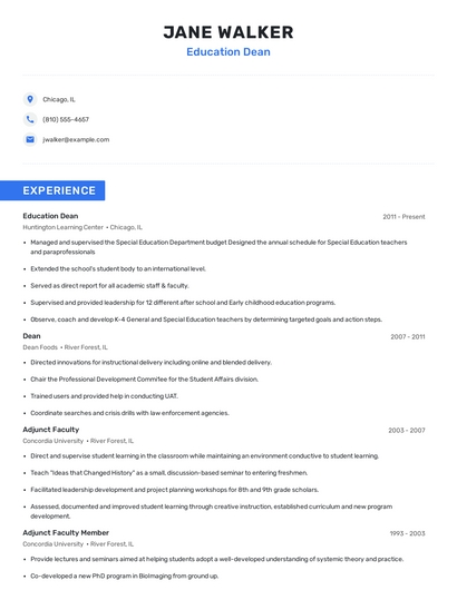 Choose from 10+ customizable education dean resume templates