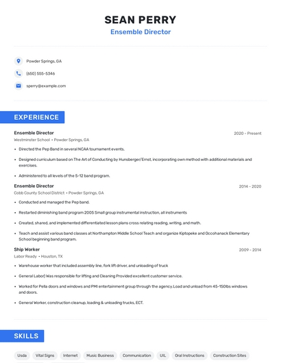 Ensemble director skills for your resume and career