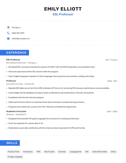 Choose from 10+ customizable esl professor resume templates