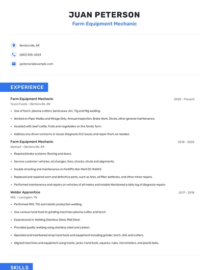 Choose from 10+ customizable farm equipment mechanic resume templates