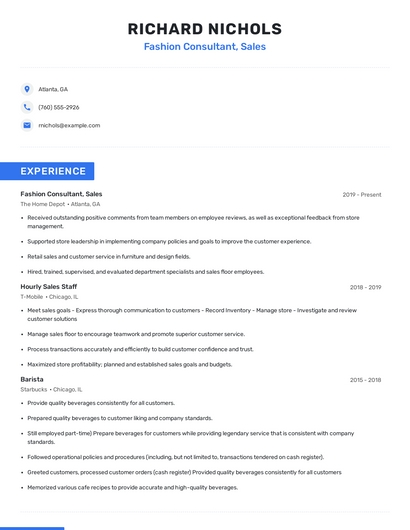 Choose from 10+ customizable fashion consultant, sales resume templates