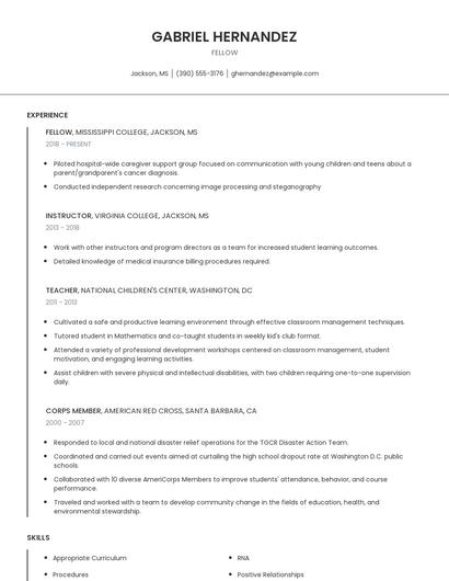 Choose from a variety of easy-to-use fellow resume templates and get expert advice from Zippia’s AI resume writer along the way. Using pre-approved templates, you can rest assured that the structure and format of your fellow resume is top notch. Choose a template with the colors, fonts & text sizes that are appropriate for your industry.