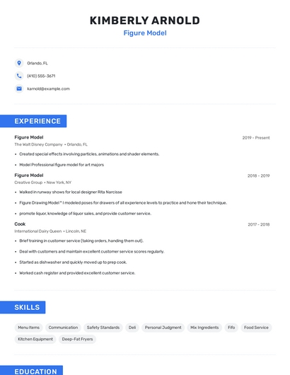 Build a professional figure model resume in minutes. Our AI resume writing assistant will guide you through every step of the process, and you can choose from 10+ resume templates to create your figure model resume.7. Human Form