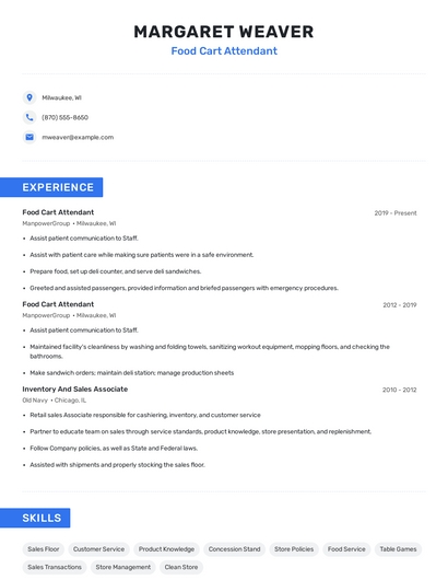 Choose from 10+ customizable food cart attendant resume templates