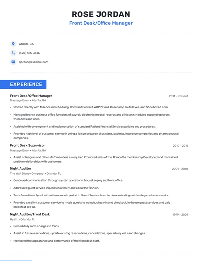 Choose from 10+ customizable front desk/office manager resume templates
