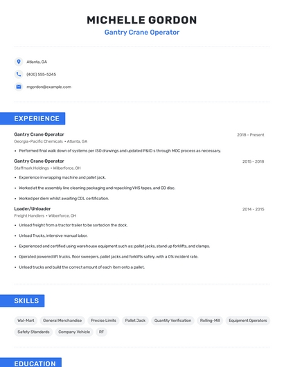 The most important skills for a gantry crane operator resume and required skills for a gantry crane operator to have include: