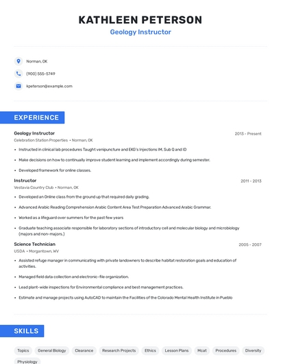 Choose from 10+ customizable geology instructor resume templates