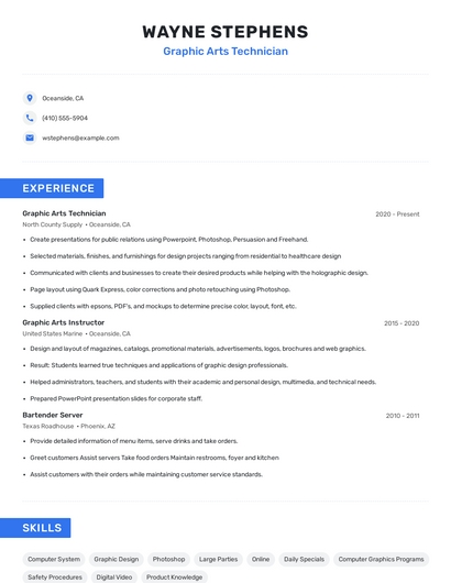 The most important skills for a graphic arts technician resume and required skills for a graphic arts technician to have include: