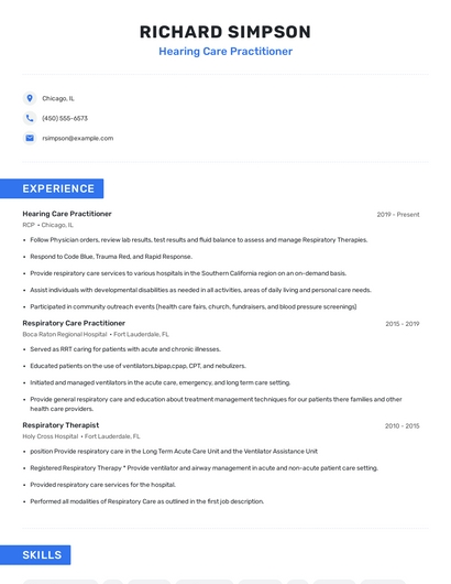 The most important skills for a hearing care practitioner resume and required skills for a hearing care practitioner to have include:
