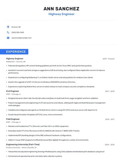 Choose from 10+ customizable highway engineer resume templates