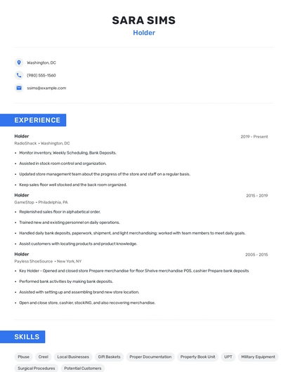 Choose from 10+ customizable holder resume templates