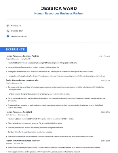 Build a professional human resources business partner resume in minutes. Browse through our resume examples to identify the best way to word your resume. Then choose from 5+ resume templates to create your human resources business partner resume.
