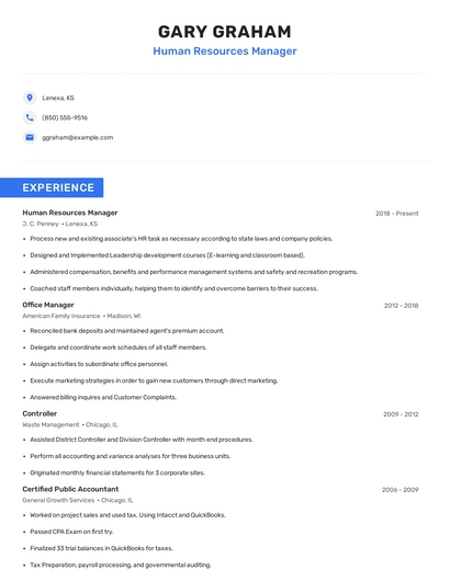 Build a professional human resources manager resume in minutes. Browse through our resume examples to identify the best way to word your resume. Then choose from 5+ resume templates to create your human resources manager resume.