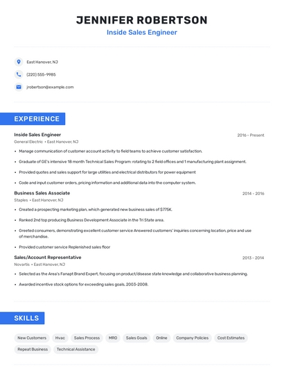 Build a professional inside sales engineer resume in minutes. Browse through our resume examples to identify the best way to word your resume. Then choose from 5+ resume templates to create your inside sales engineer resume.
