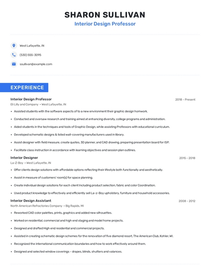 The most important skills for an interior design professor resume and required skills for an interior design professor to have include: