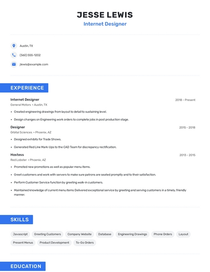 The most important skills for an internet designer resume and required skills for an internet designer to have include: