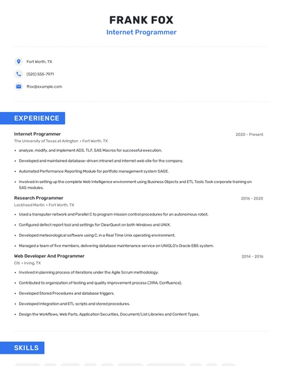 The most important skills for an internet programmer resume and required skills for an internet programmer to have include: