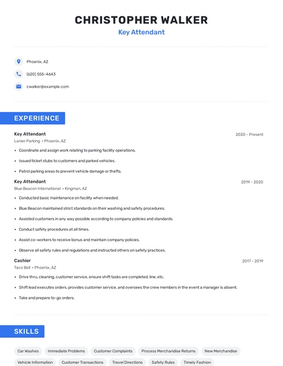 The most important skills for a key attendant resume and required skills for a key attendant to have include: