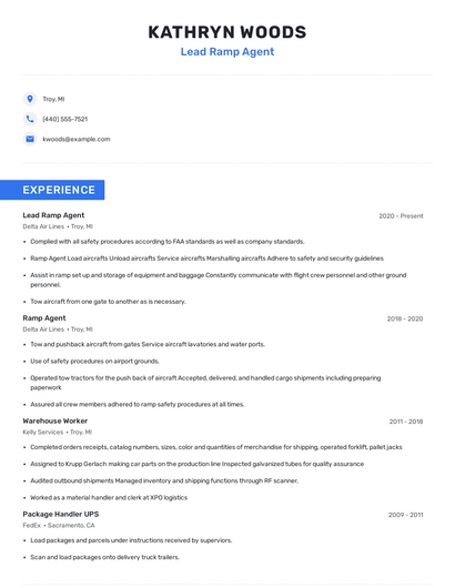 Build a professional lead ramp agent resume in minutes. Browse through our resume examples to identify the best way to word your resume. Then choose from 5+ resume templates to create your lead ramp agent resume.