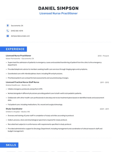 Licensed nurse practitioner skills for your resume and career