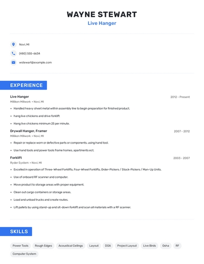 The most important skills for a live hanger resume and required skills for a live hanger to have include:
