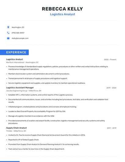 Build a professional logistics analyst resume in minutes. Browse through our resume examples to identify the best way to word your resume. Then choose from 5+ resume templates to create your logistics analyst resume.