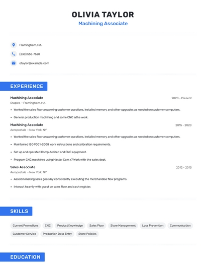 Build a professional machining associate resume in minutes. Our AI resume writing assistant will guide you through every step of the process, and you can choose from 10+ resume templates to create your machining associate resume.7. PC