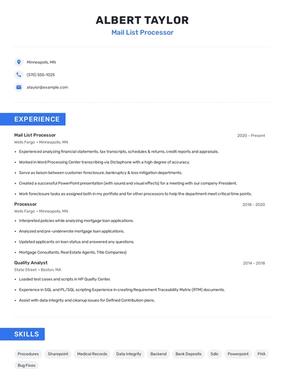 Mail list processor skills for your resume and career