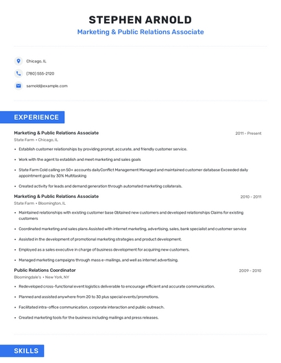 Choose from 10+ customizable marketing & public relations associate resume templates