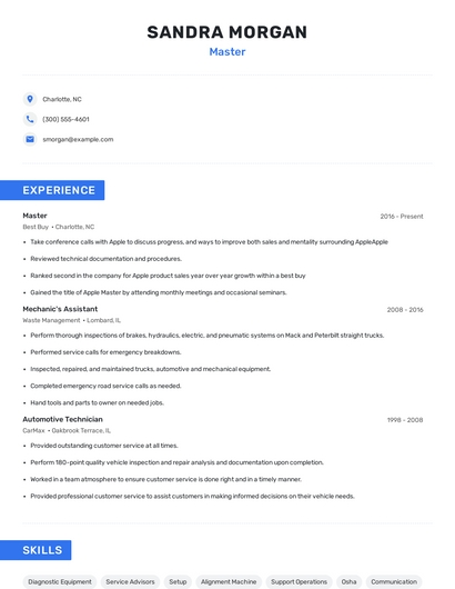Build a professional master resume in minutes. Our AI resume writing assistant will guide you through every step of the process, and you can choose from 10+ resume templates to create your master resume.7. Apple
