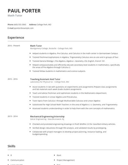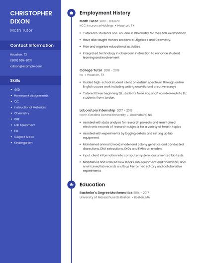 Step 2: Detail your years of experience in math tutor-related roles and your industry experience.