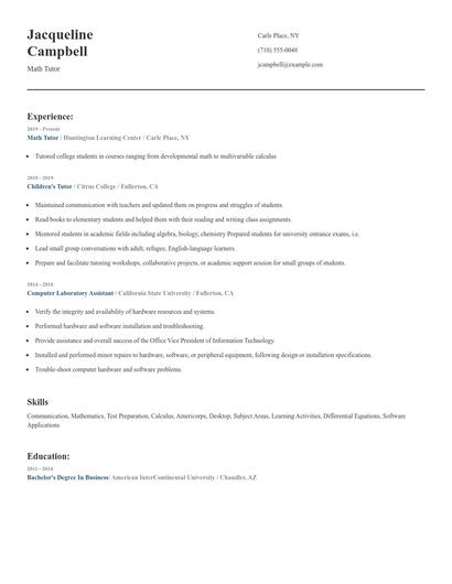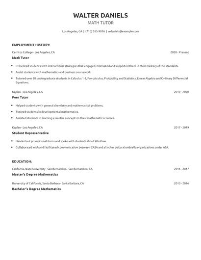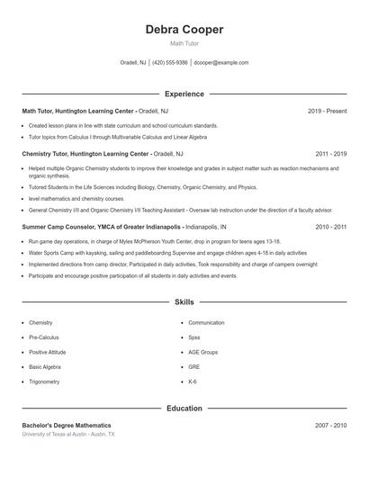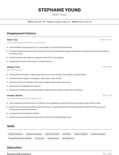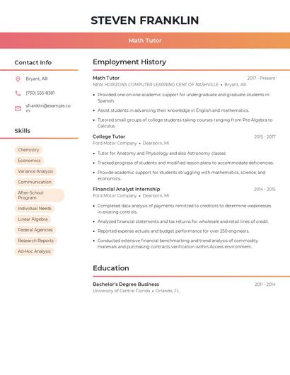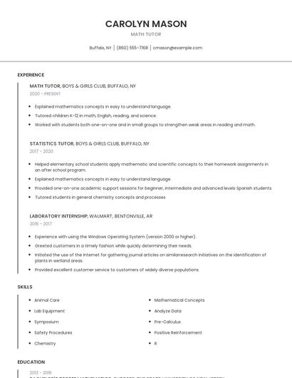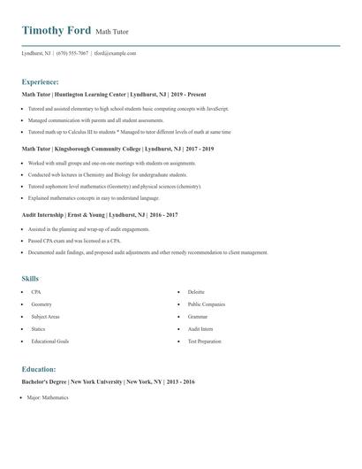 A resume summary is your opening statement that highlights your strongest skills and top accomplishments. It is your chance to quickly let recruiters know who you are professionally - and why they should hire you for the math tutor role.